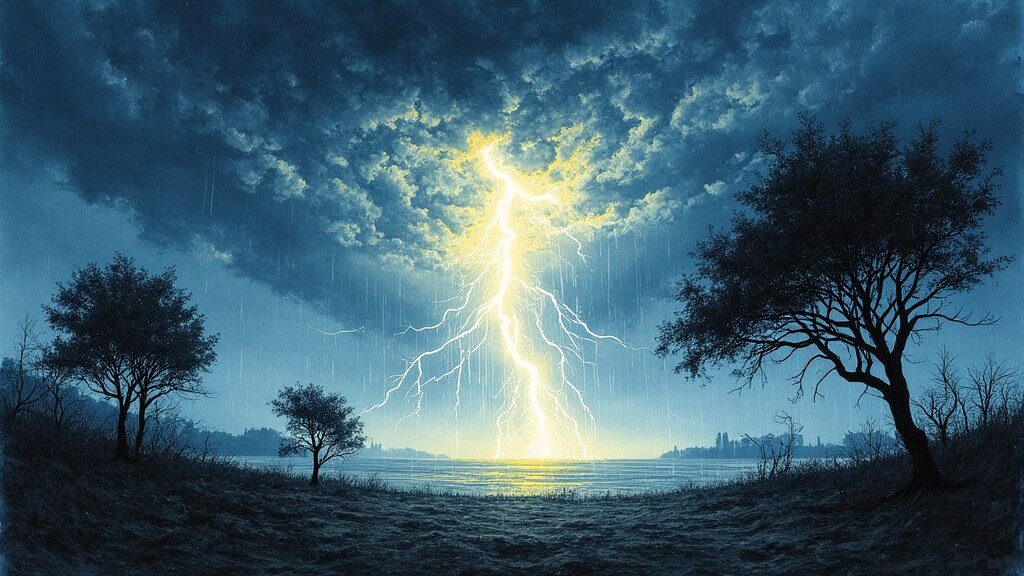• Burza z piorunami – to symbol nagłych zdarzeń, często związanych z konfliktami. Piorun uderzający w drzewo może zapowiadać czyjś gniew skierowany w stronę śniącego, a seria błyskawic – nerwowy okres pełen nieprzewidzianych zmian.