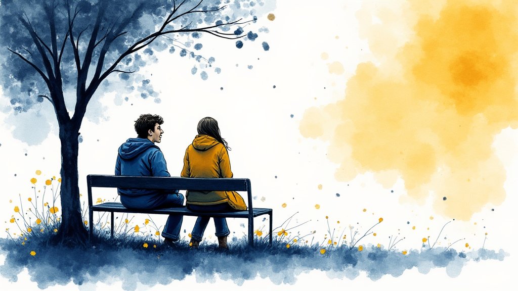- Niemy krzyk w kierunku przyjaciela – tłumione emocje wymagające uwagi.