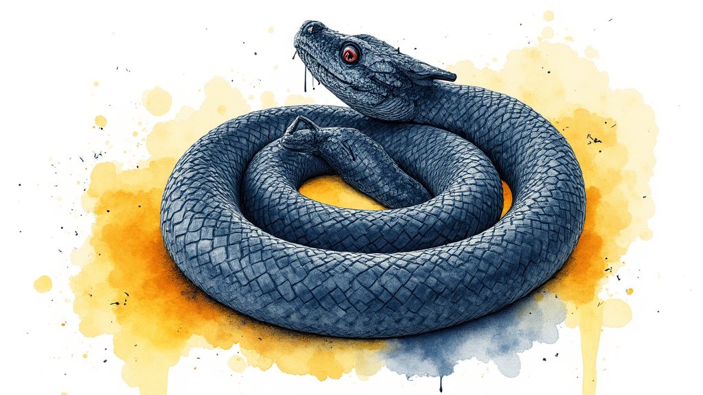 Wąż tworzący splątany wzór często odzwierciedla trudność w oddzieleniu prawdy od fałszu.